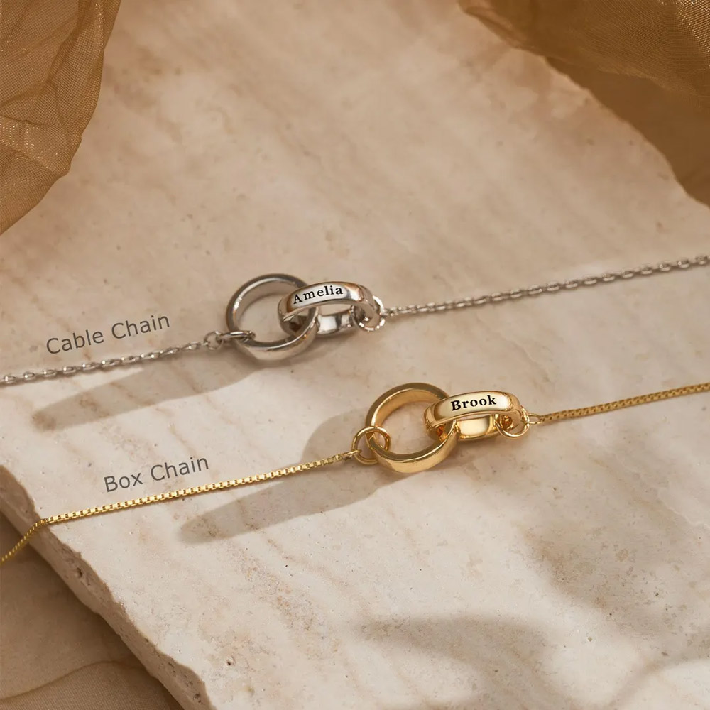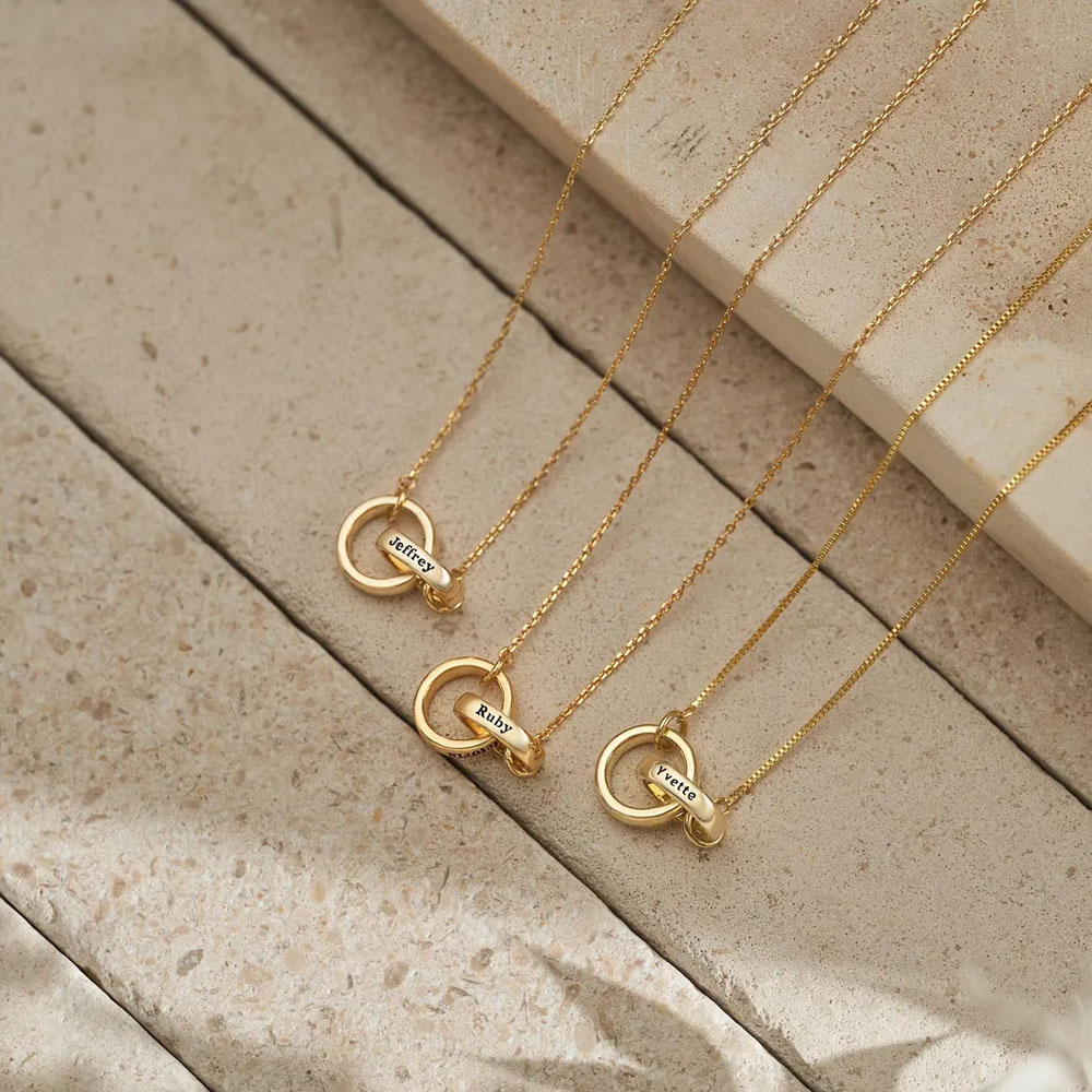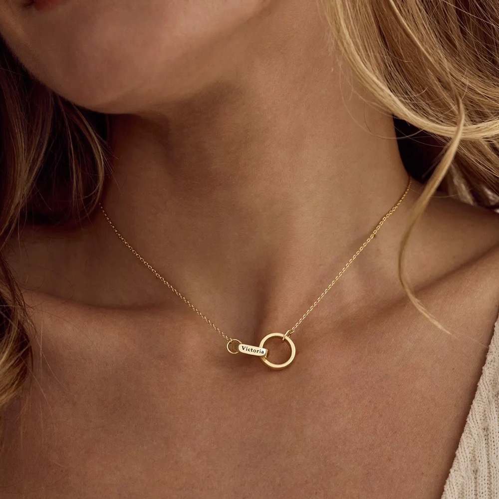 Personalization - Customize the necklace with two names, beautifully engraved on the two rings. This personal touch transforms the piece into a unique keepsake, ideal for celebrating relationships and special moments.