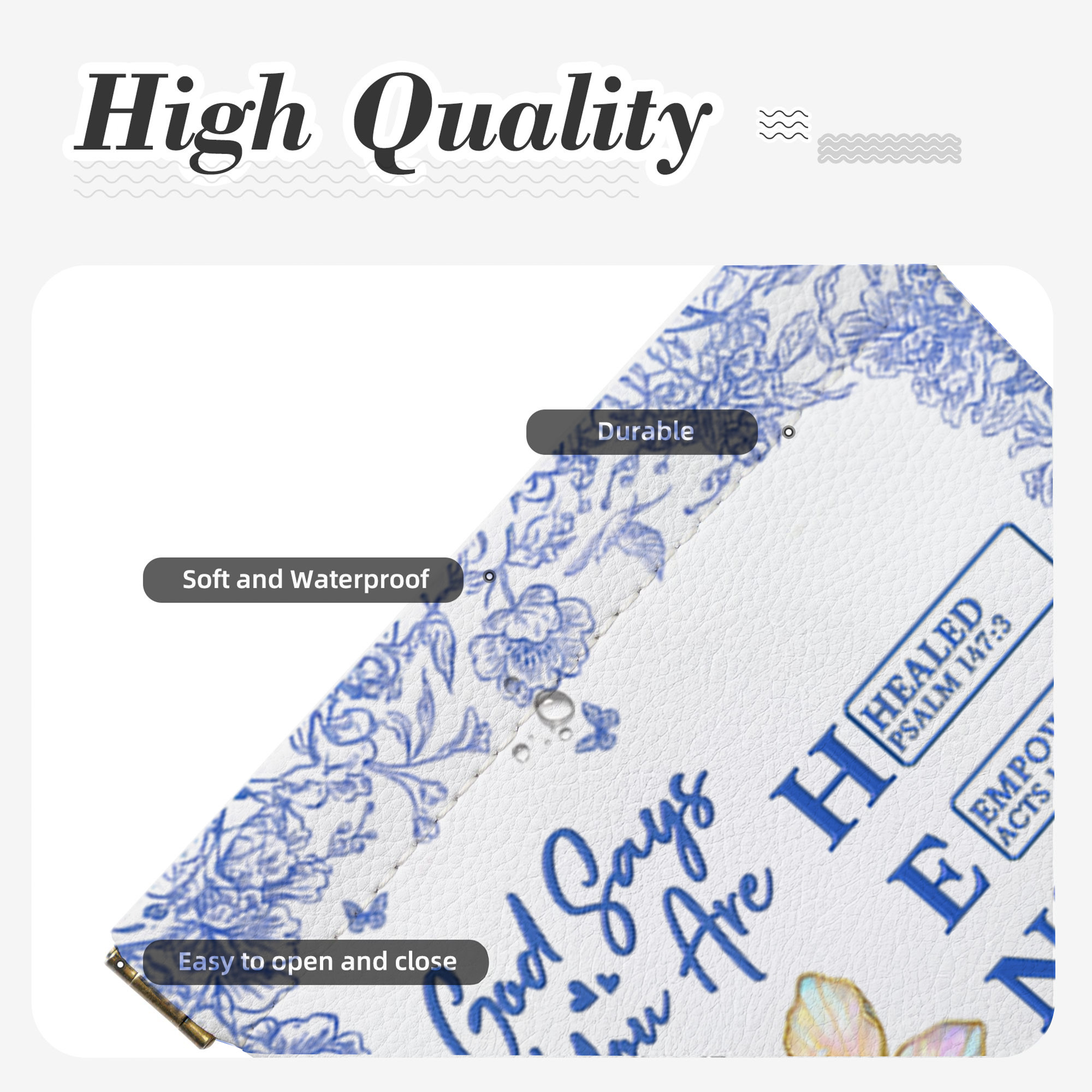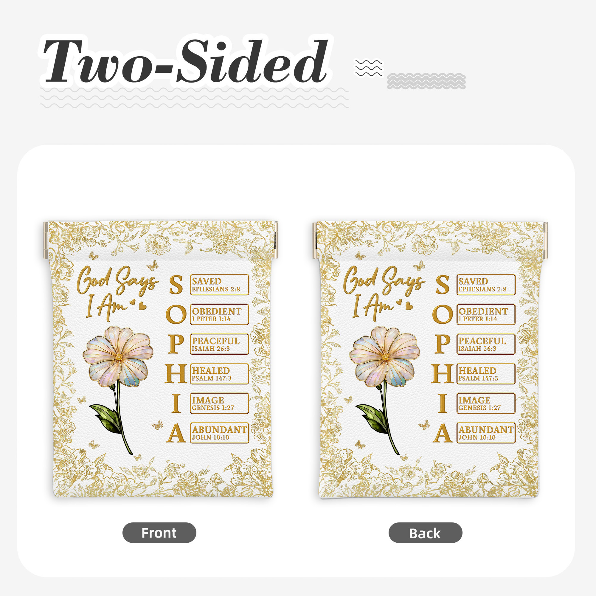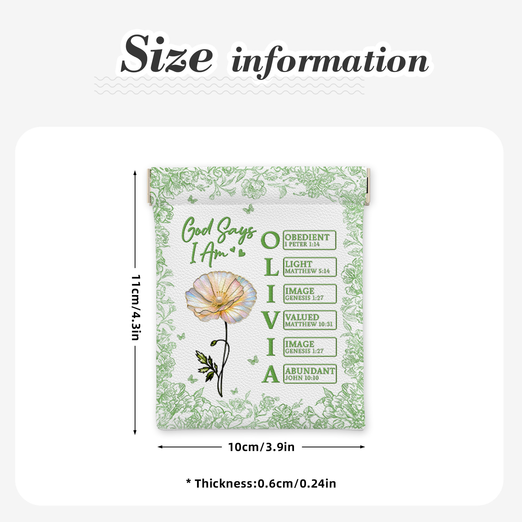 Custom Name Birth Flower God Says I Am Bible Verses Leather Rosary Pouch, Squeeze Coin Purse, Mother’s Day/Baptism Gift for Her/Mom/Christian Women