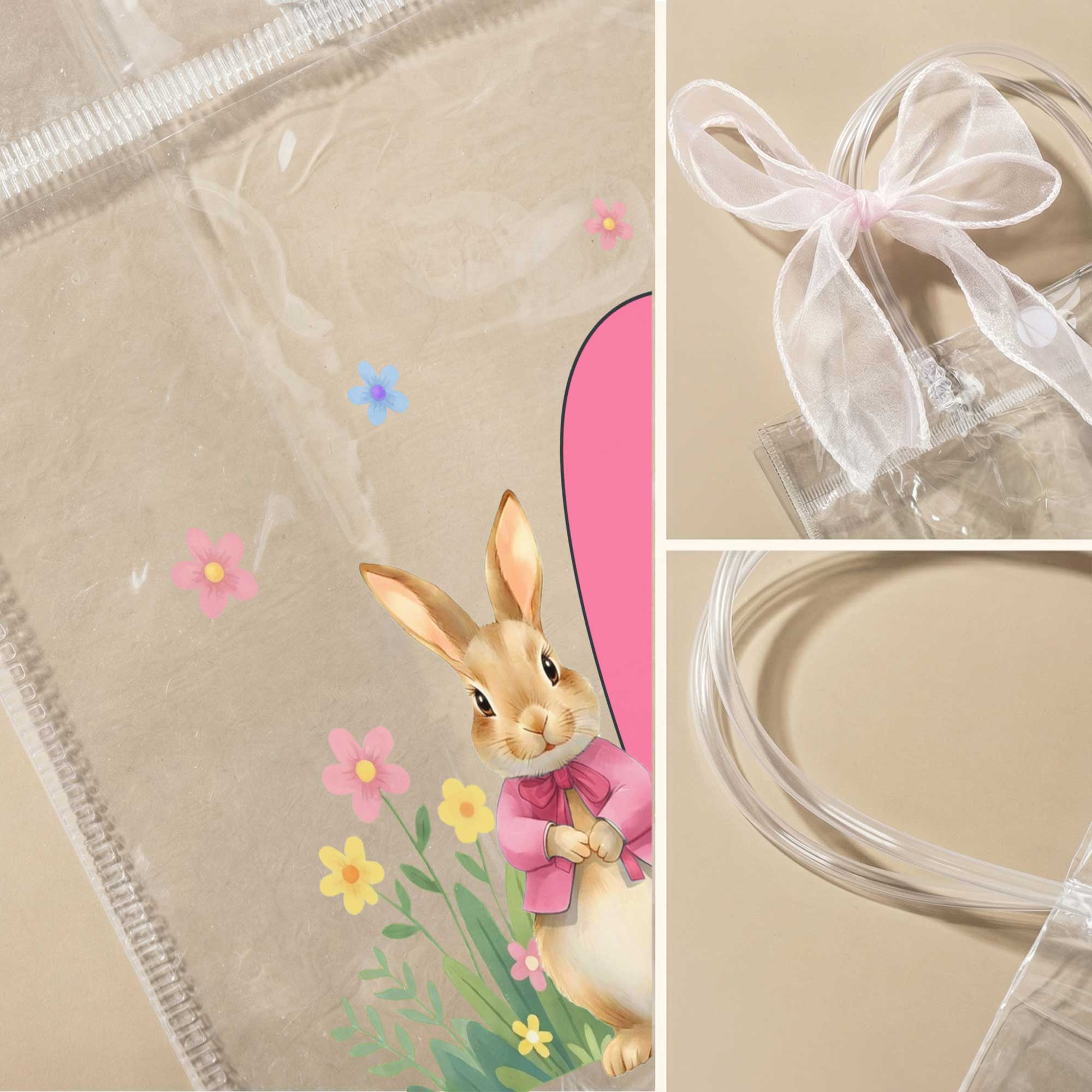 Clear PVC with Bow Decor - Made from durable clear PVC, this bag is lightweight yet sturdy enough to carry plenty of Easter eggs and treats. The see-through style shows off the colorful goodies inside, while the pink bow ribbon adds a sweet festive touch.