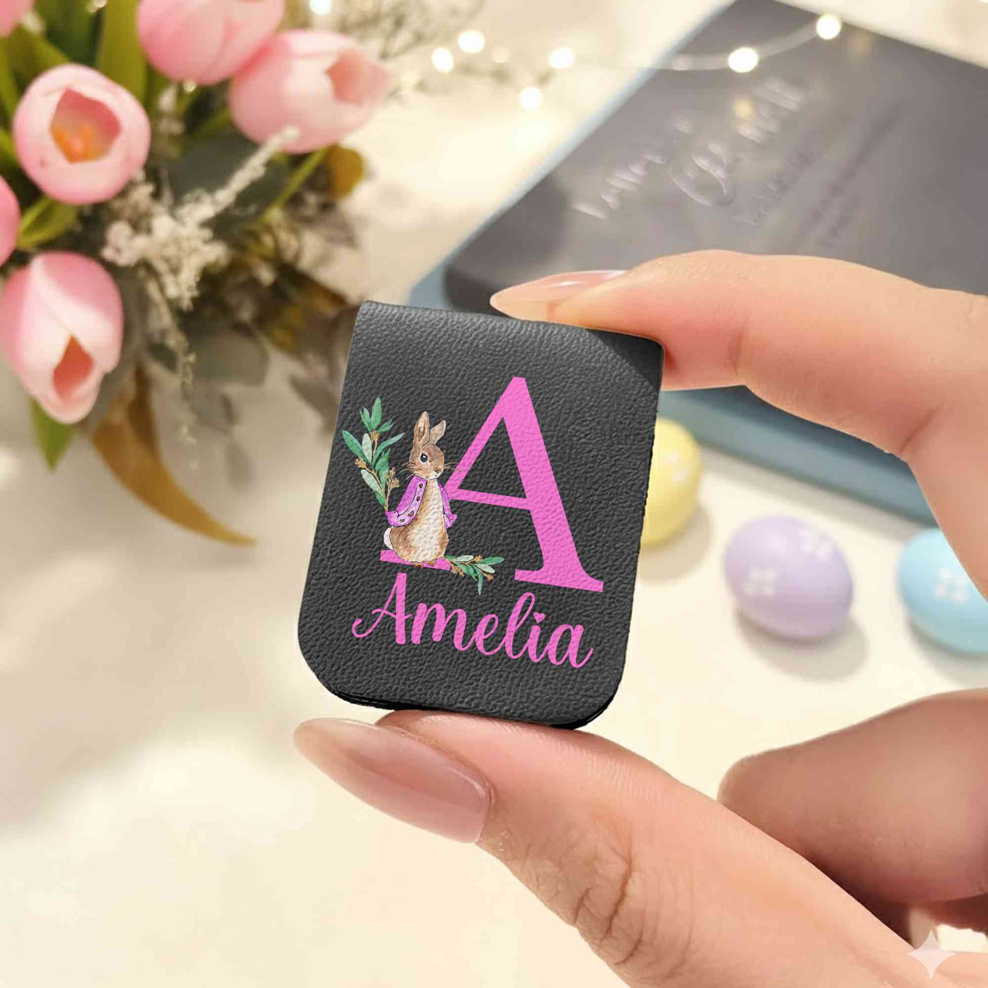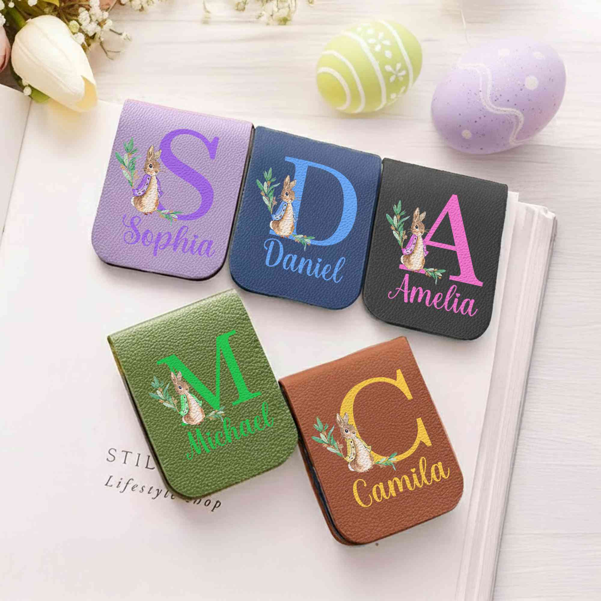 Custom Name Peter Rabbit Alphabet Leather Bookmark, Magnetic Floral Bookmark Clip, Reading Accessory, Birthday/Easter Gift for Book Lovers/Librarians