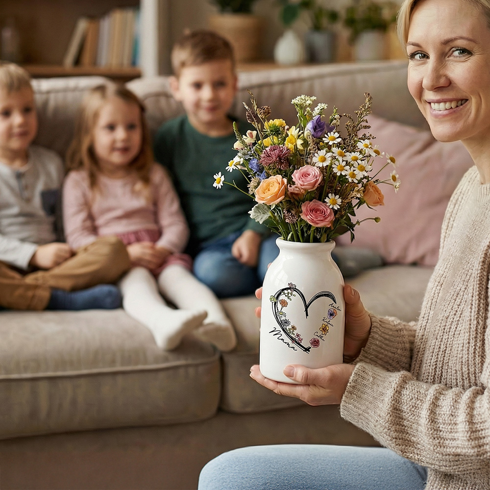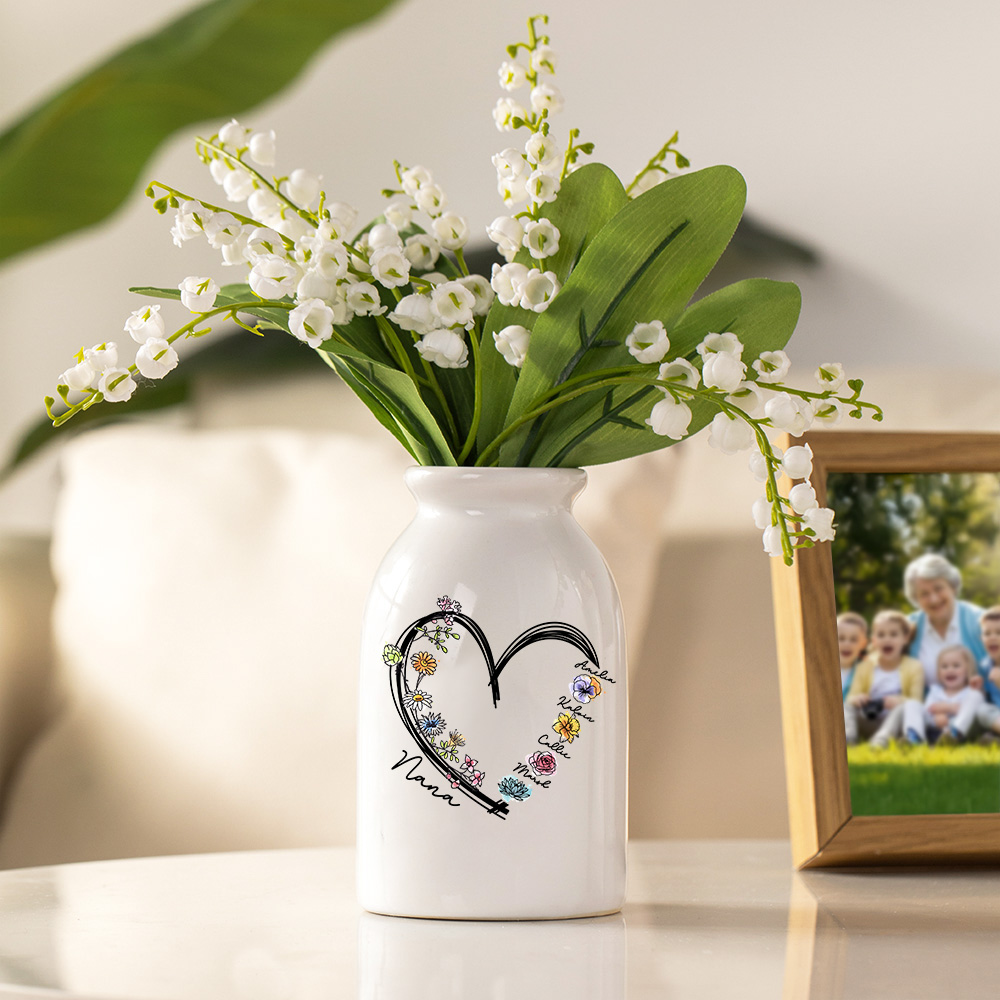 Customized Design - This woman's ceramic vase features personalized with 1-6 names and birth flowers of family members, creating a charming heart design and a personalized home decor piece that is perfect for your beloved mom, grandma, or any gardening lover in your life.