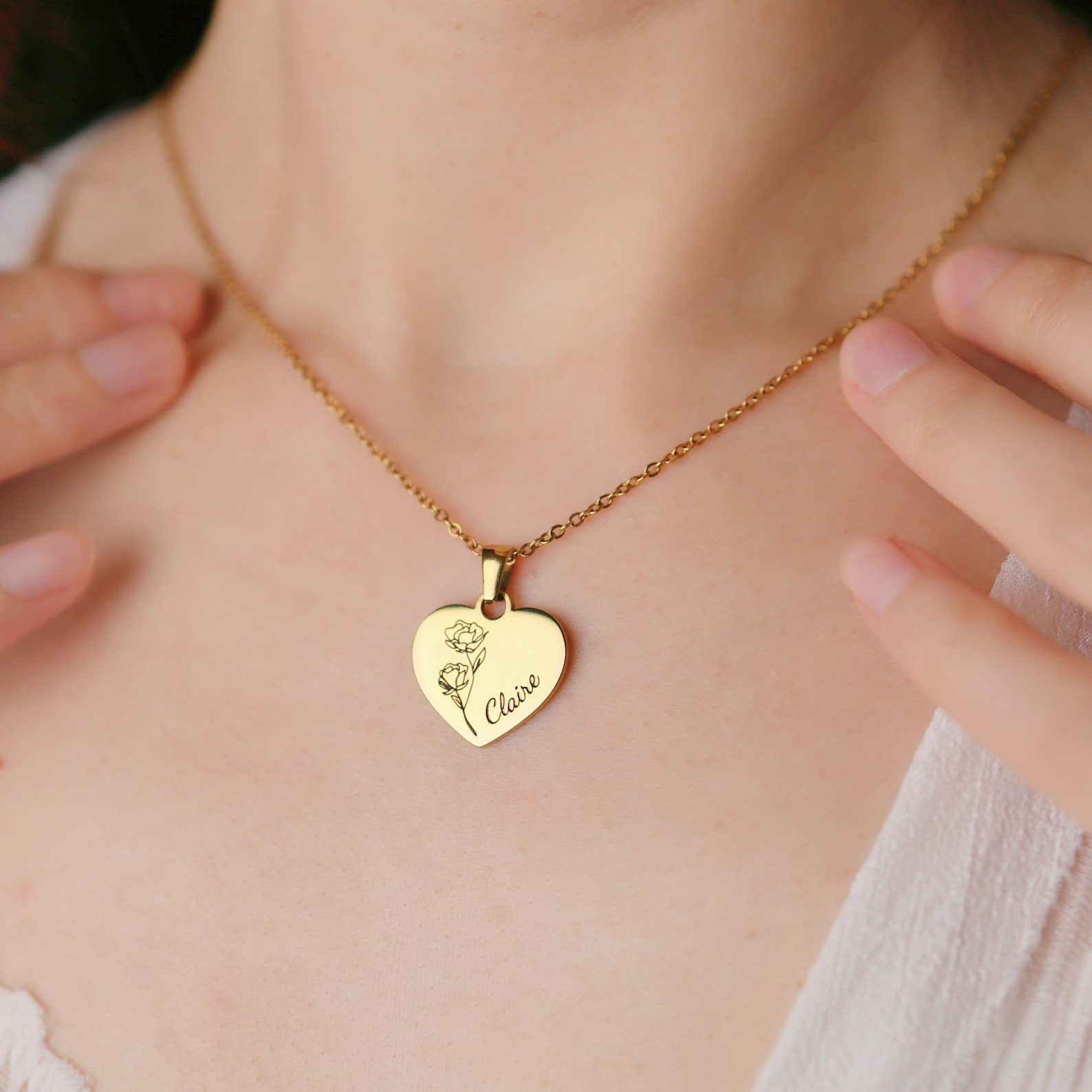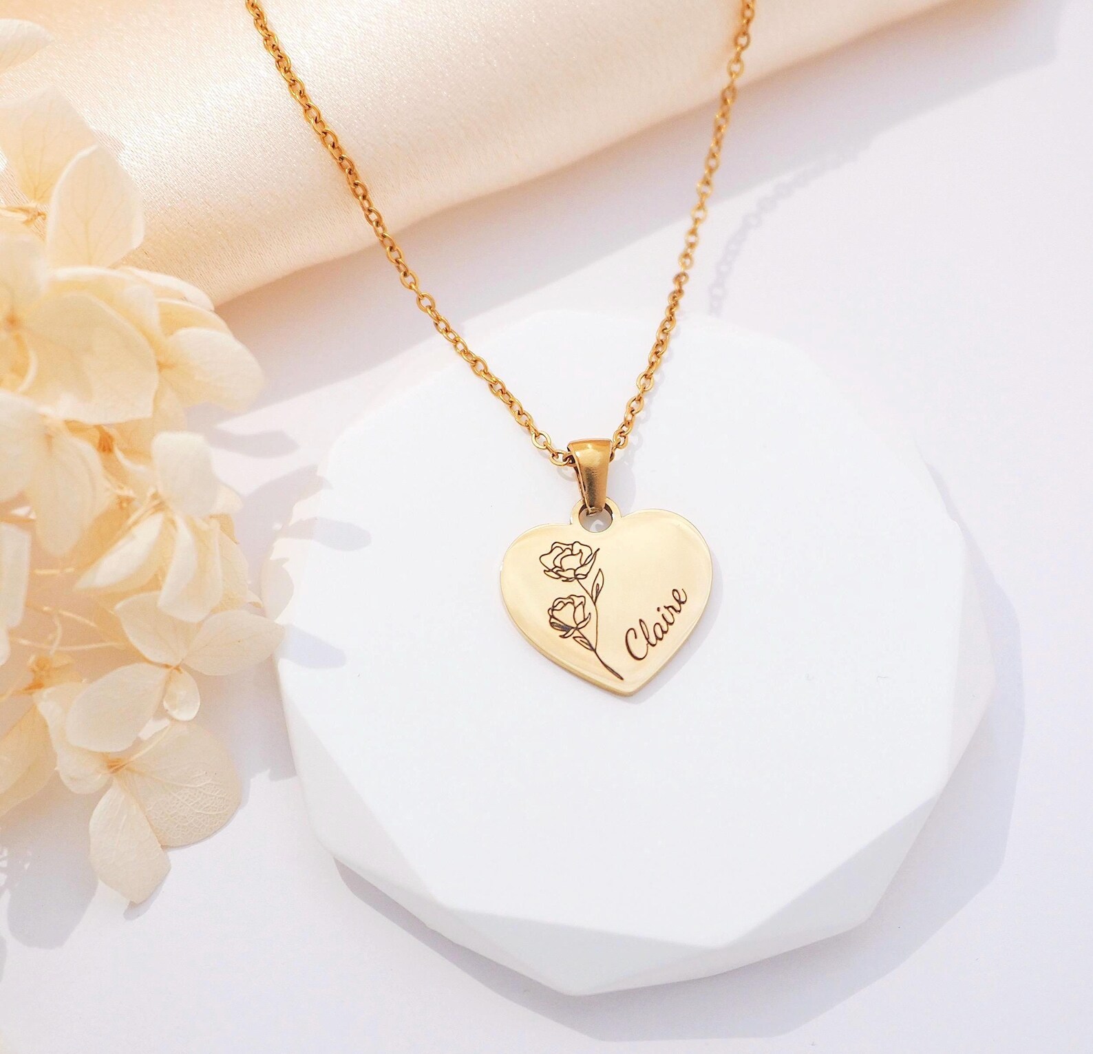 Elegant Rose & Heart Design – This delicate necklace features a classic heart-shaped pendant engraved with a minimalist rose—a timeless symbol of love, beauty, and grace. The necklace combines romantic charm with refined elegance, making it a perfect piece for everyday wear or special occasions.