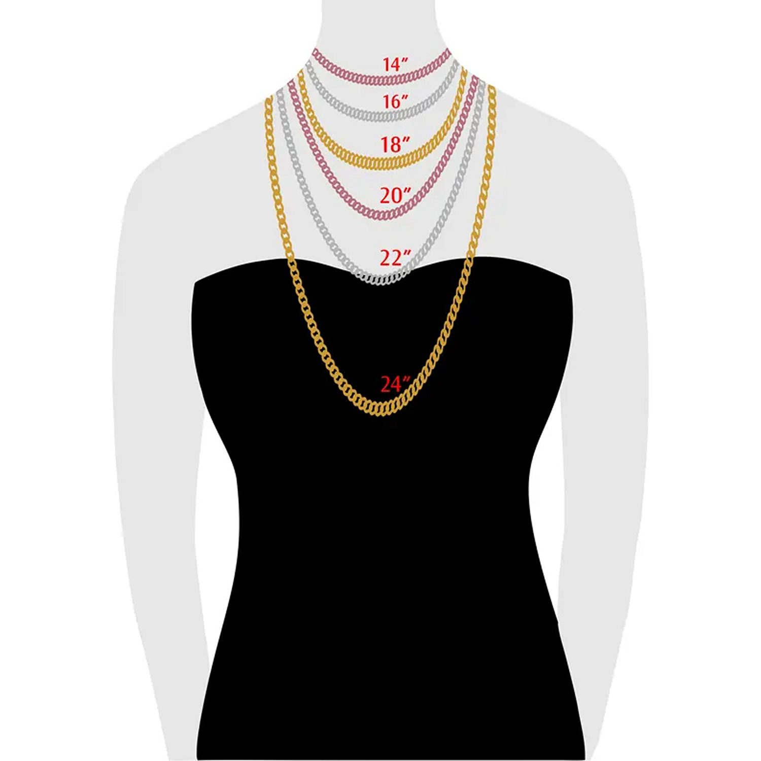 Chain Length 40CM(16INCH), 45CM(18INCH), 50CM(20INCH), 55CM(22INCH), 60CM(24INCH)