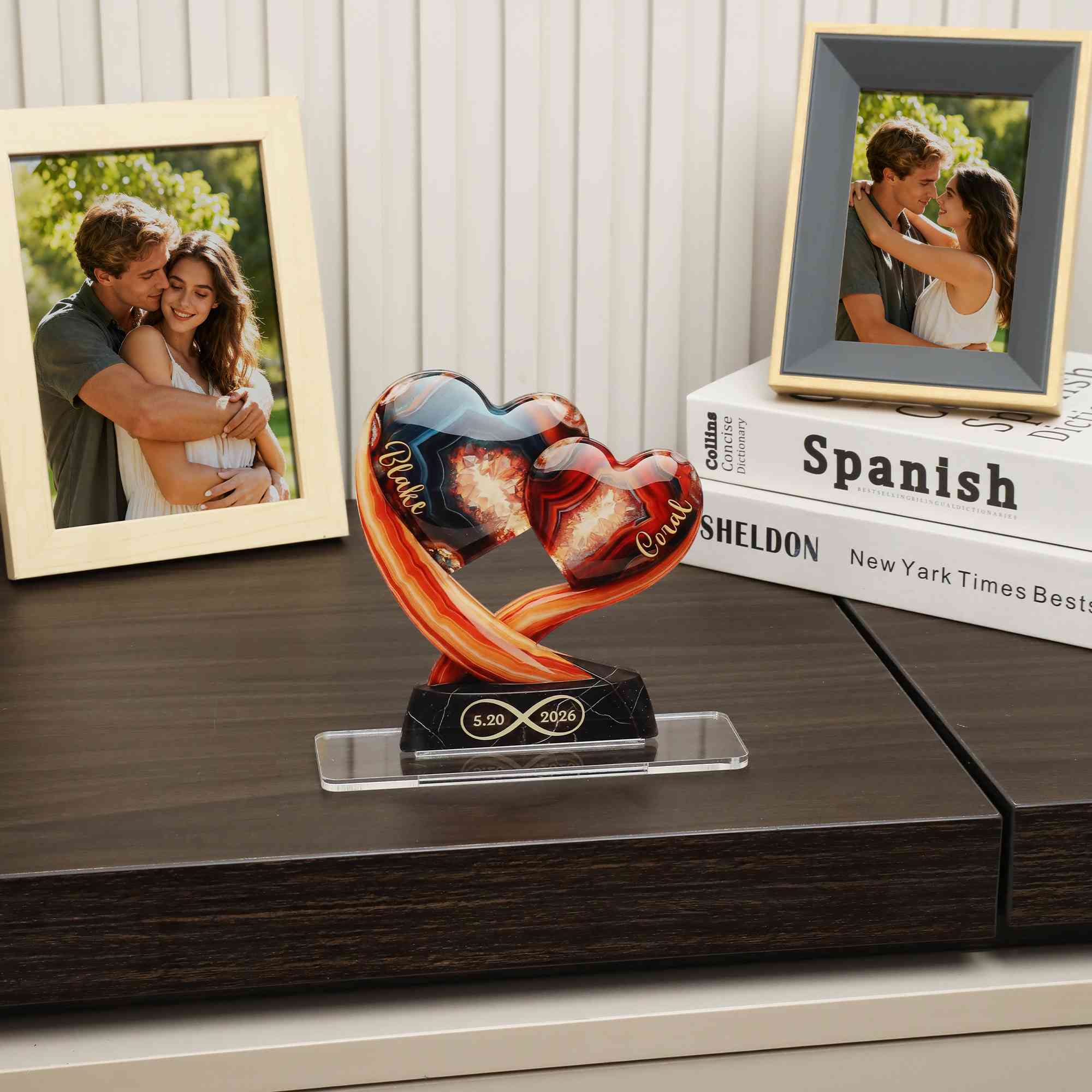 Custom Names & Special Date – Each heart is personalized with one name—The custom is written in a graceful script, while the base shows a meaningful date. This thoughtful detail turns the piece into a lasting keepsake that celebrates a milestone moment between two people.