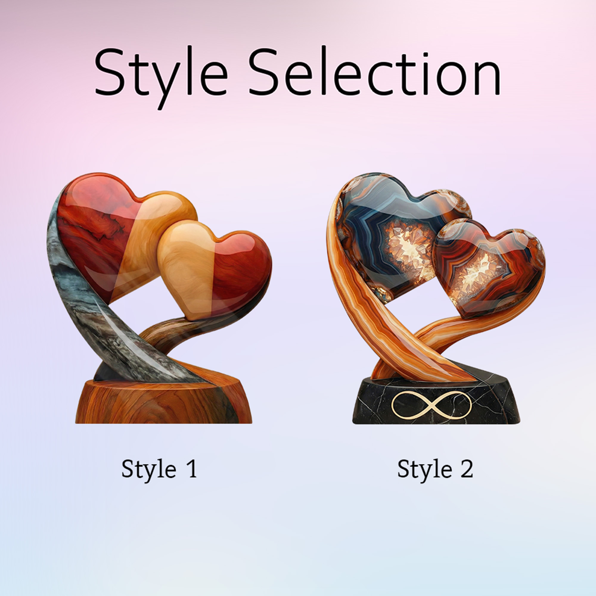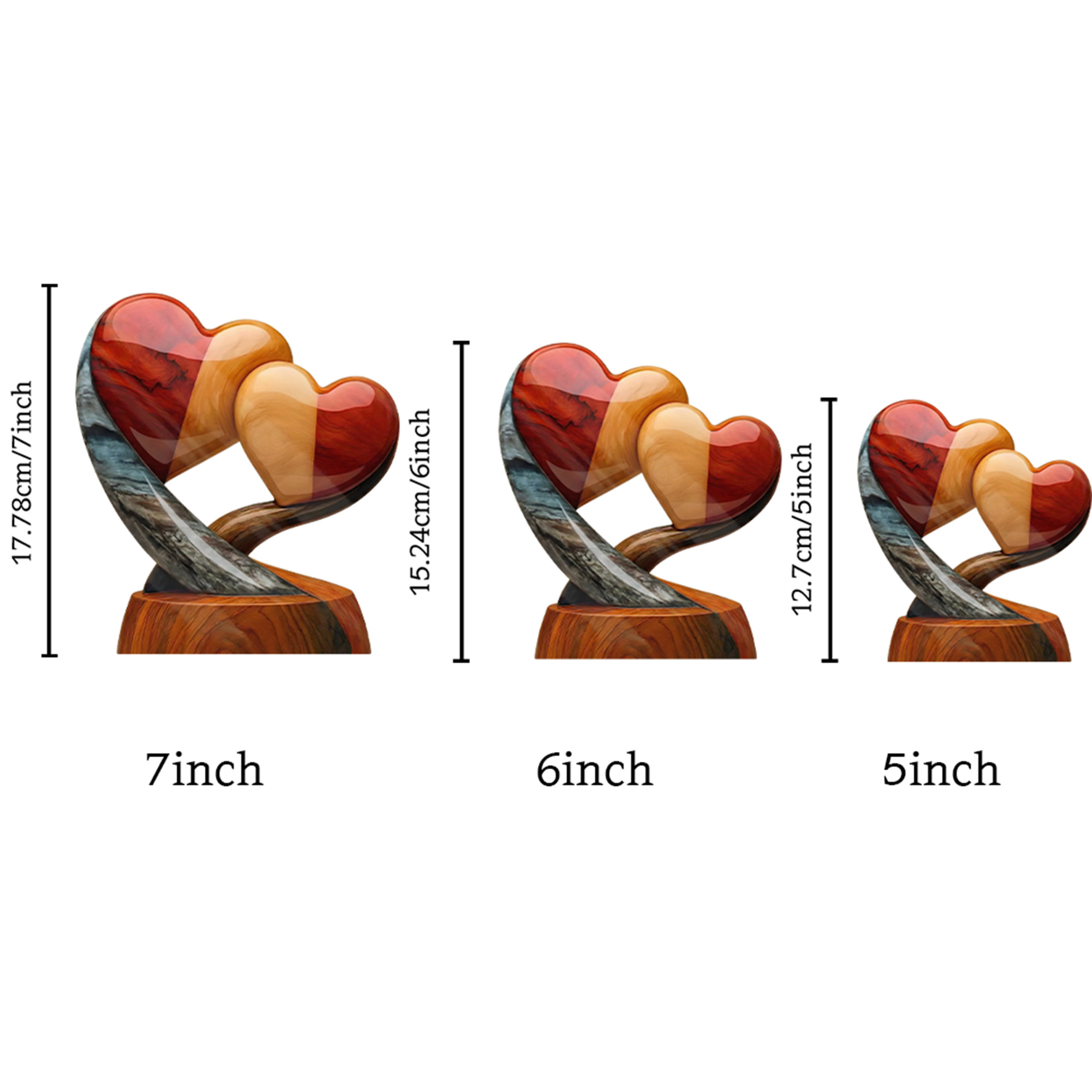 Interlocking Heart Tree Design – This elegant sculpture features two glossy hearts—interlocked in a flowing tree-like form, symbolizing unity, love, and growth. The smooth curves and vibrant red-and-amber tones reflect light beautifully, creating a striking centerpiece that captures the essence of enduring connection.