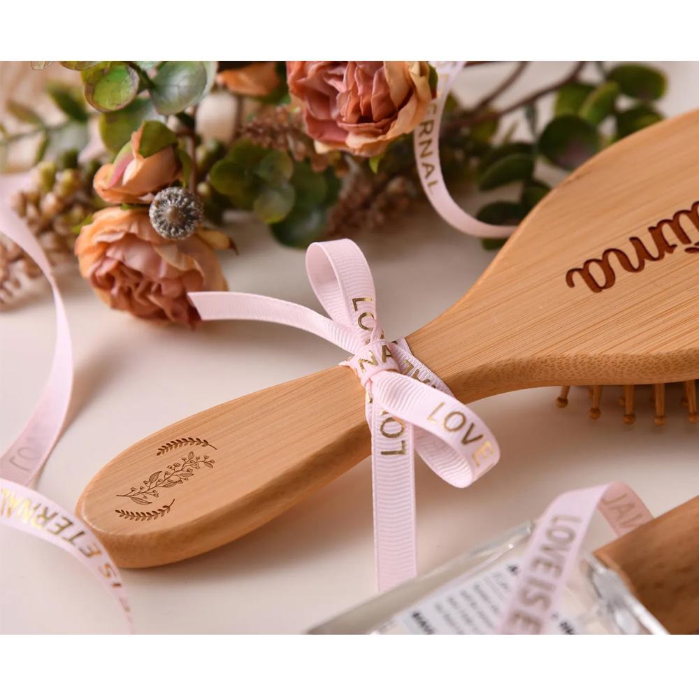 Personalized Engraved Name Floral Comb with Ribbon, Wooden Hair Brush, Bridal Shower Party Favor, Wedding/Engagement Gift for Her/Bridesmaids/Besties