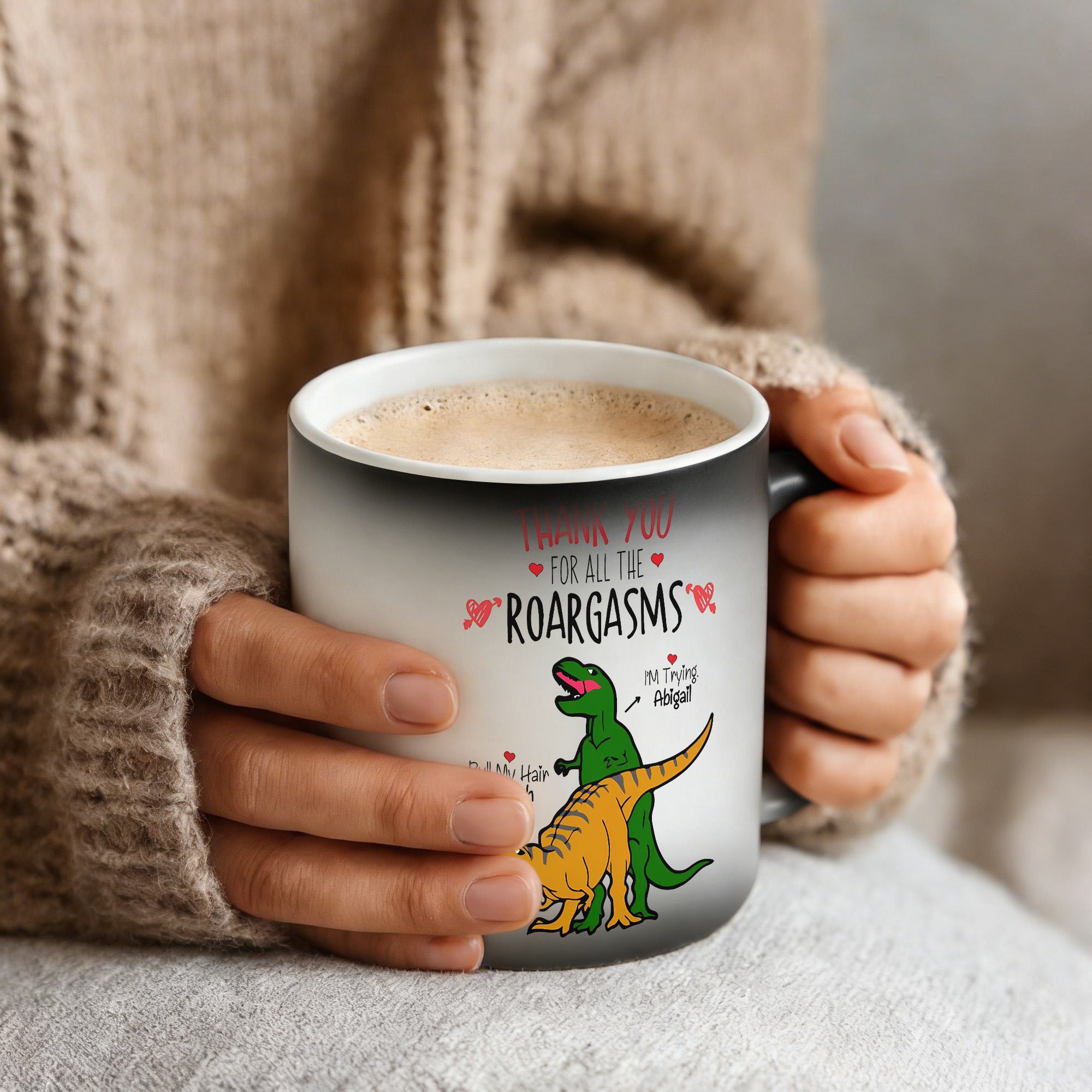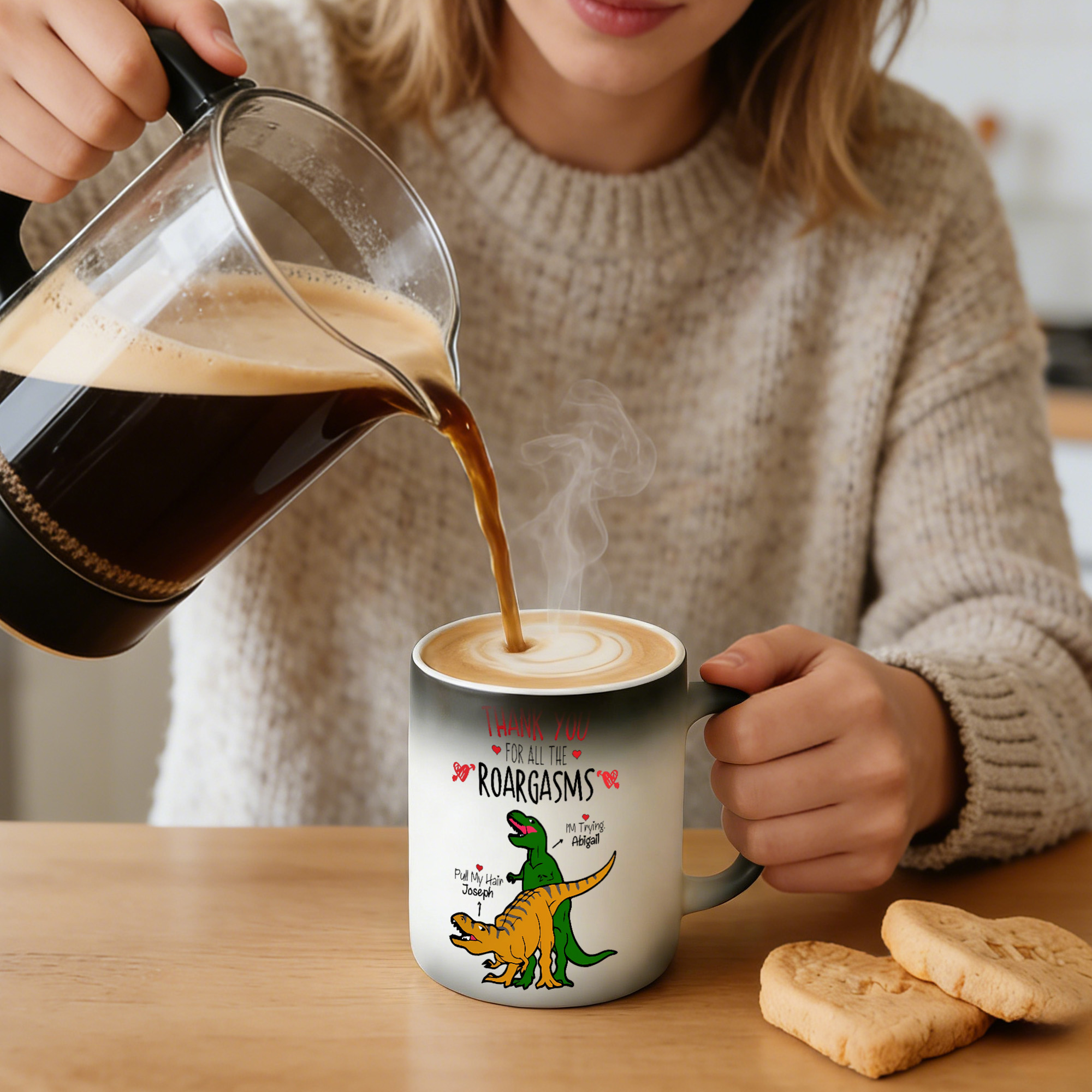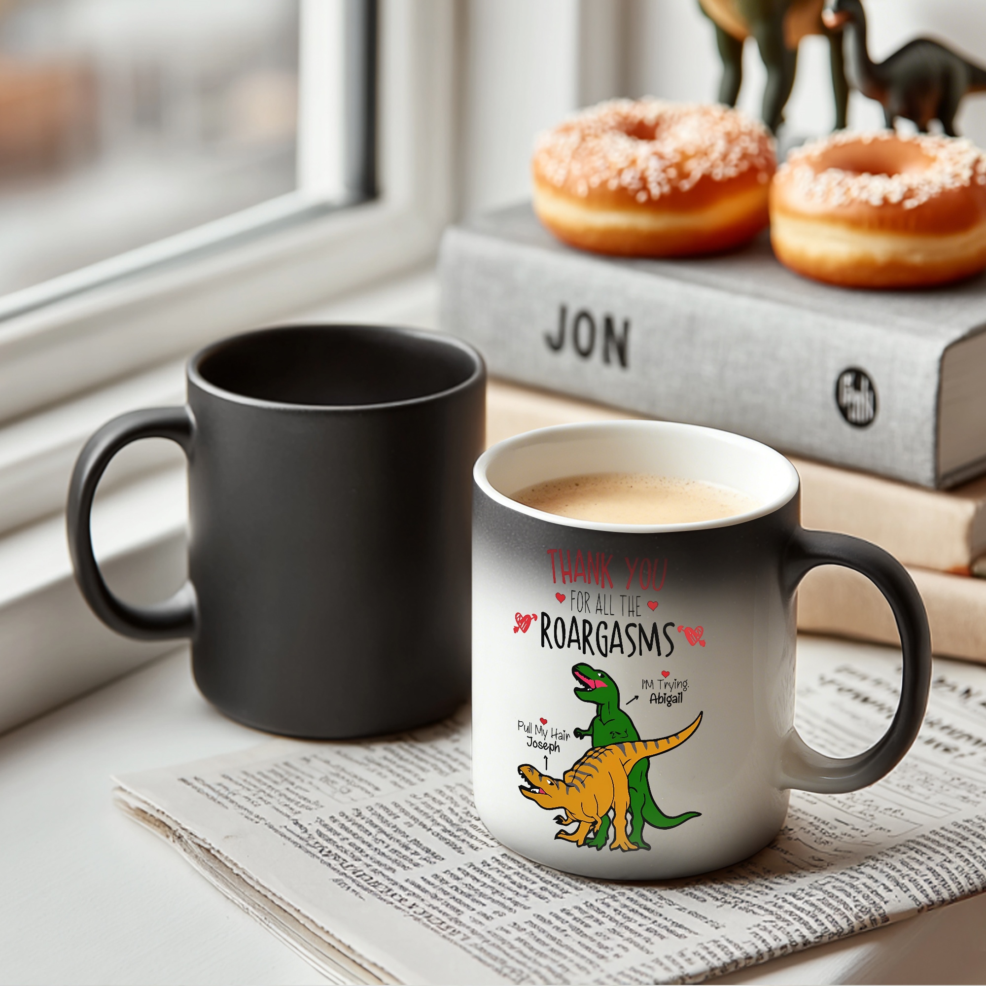 | Style | Personalized Funny T-Rex Couple Heat-Activated Mug with Names |