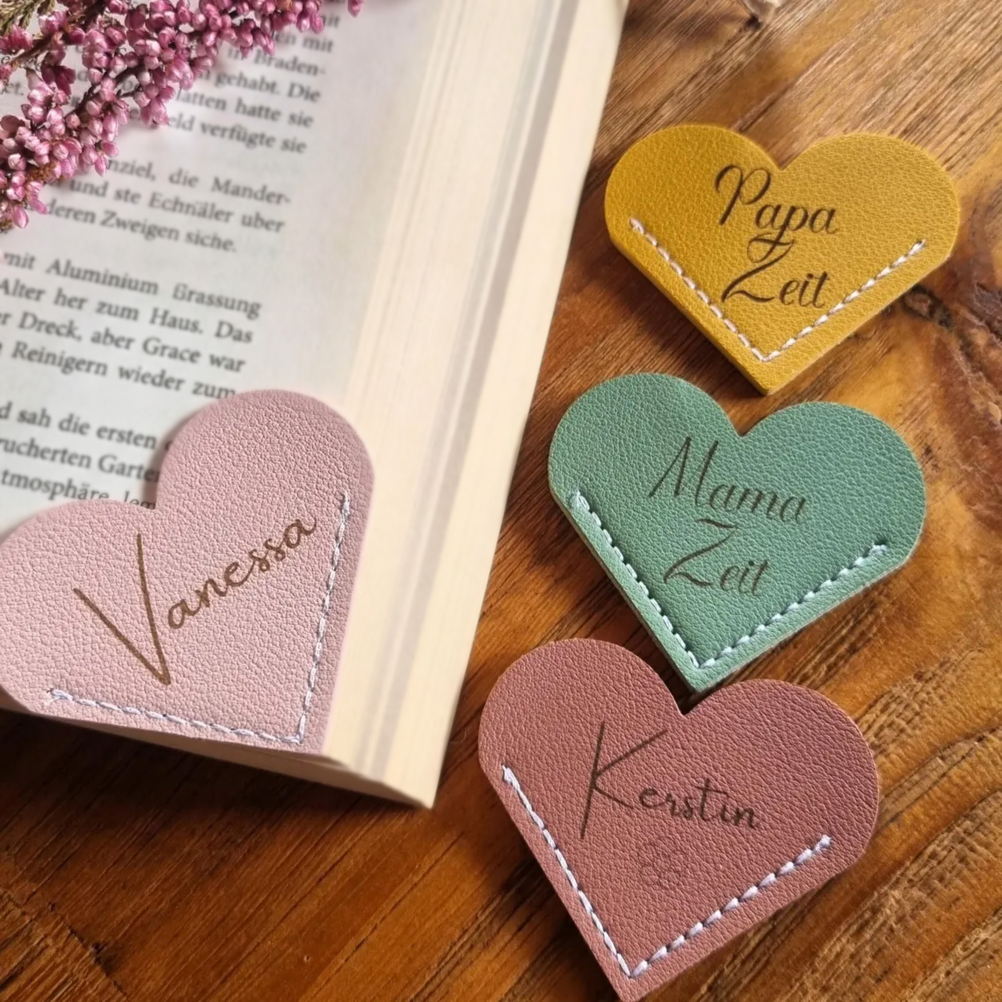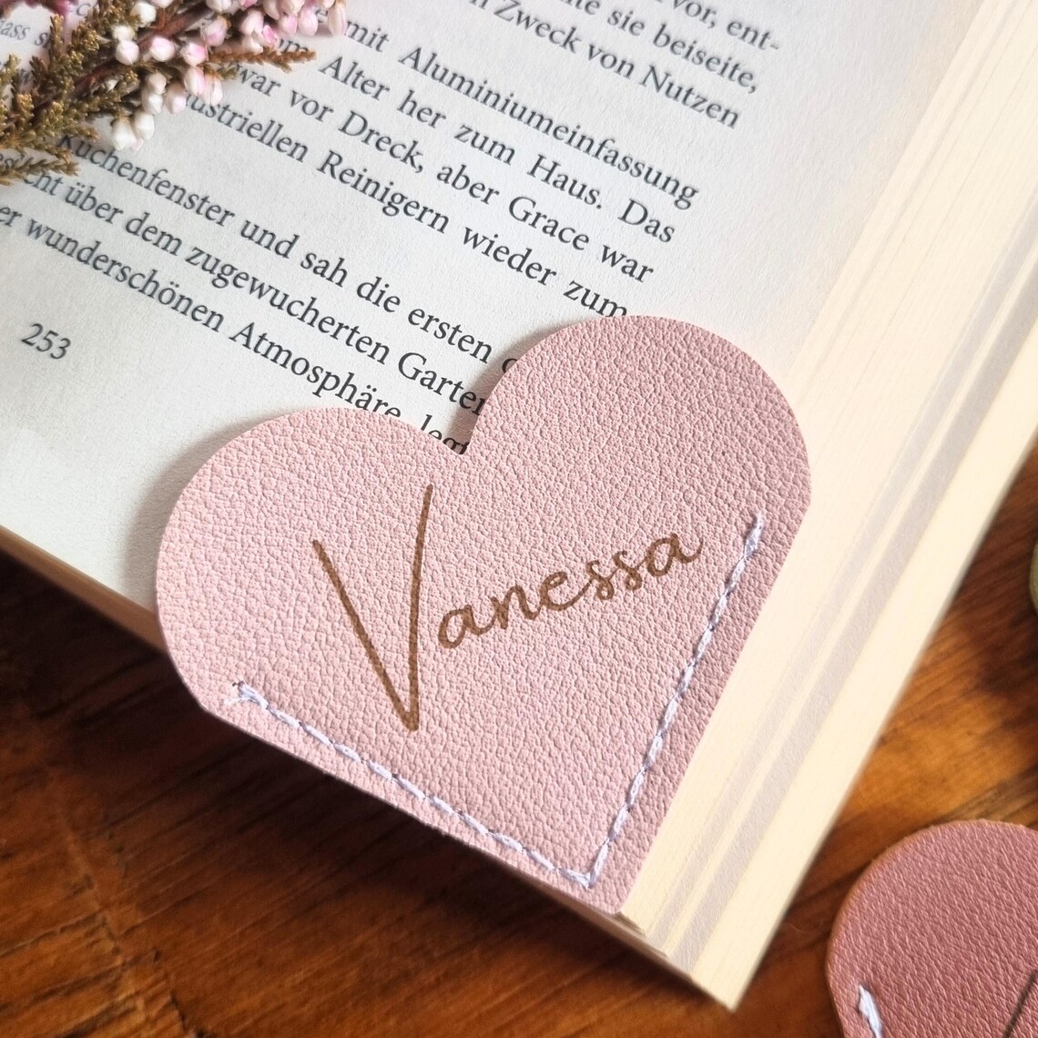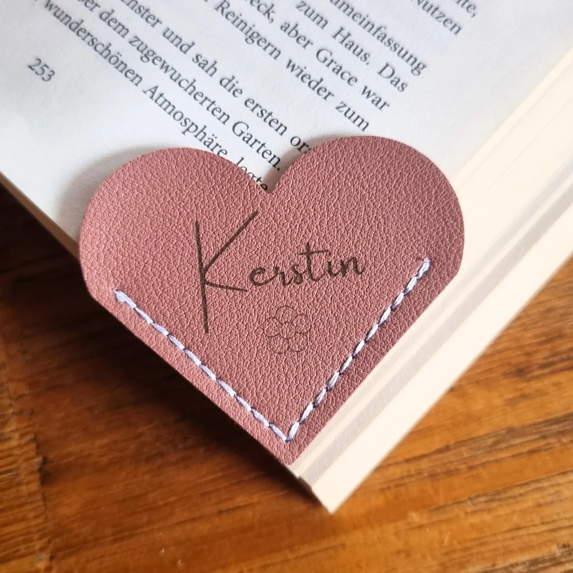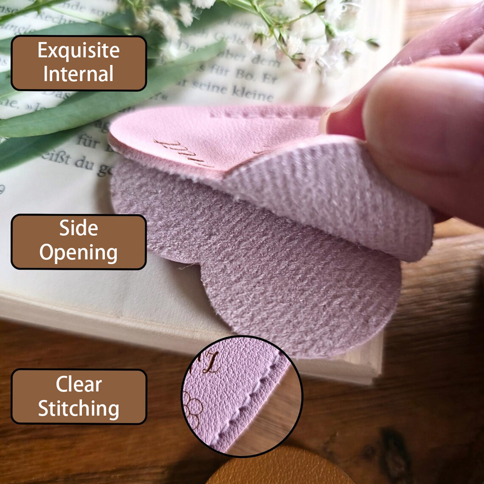 Heart Bookmark – A soft, heart-shaped leather bookmark with a personalized name. It’s a thoughtful way to mark your place and carry a little love with every read.
