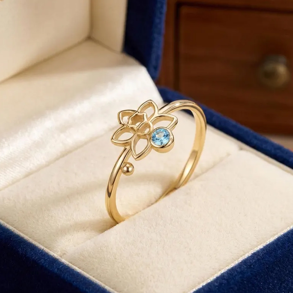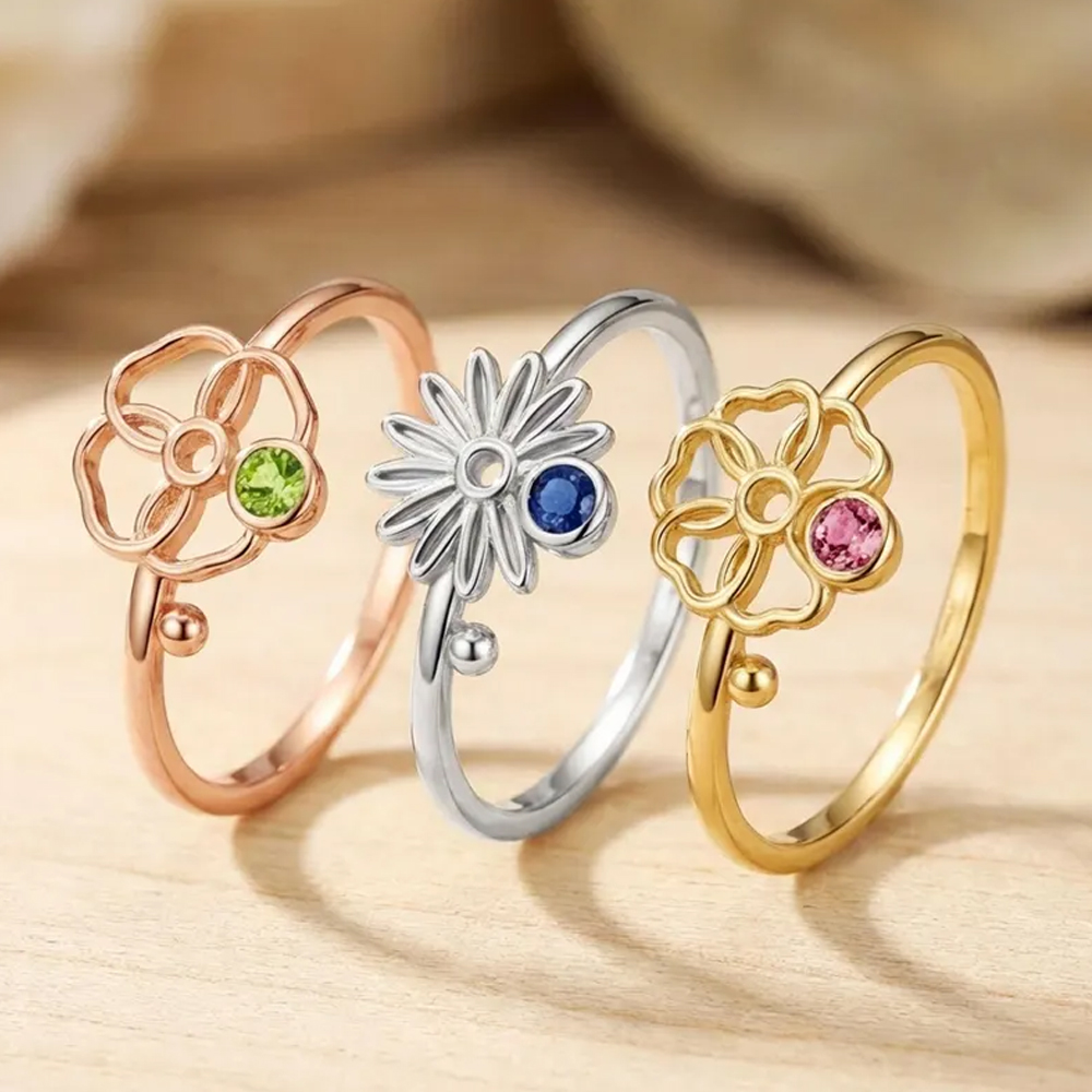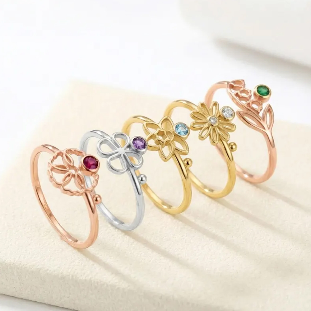 Personalized Birthstone & Flower – Each ring is customized with a birthstone corresponding to the recipient’s birth month—and paired with a symbolic birth flower, making it a deeply personal tribute to her identity and journey. The subtle yet meaningful details make it a cherished keepsake she’ll treasure for years.
