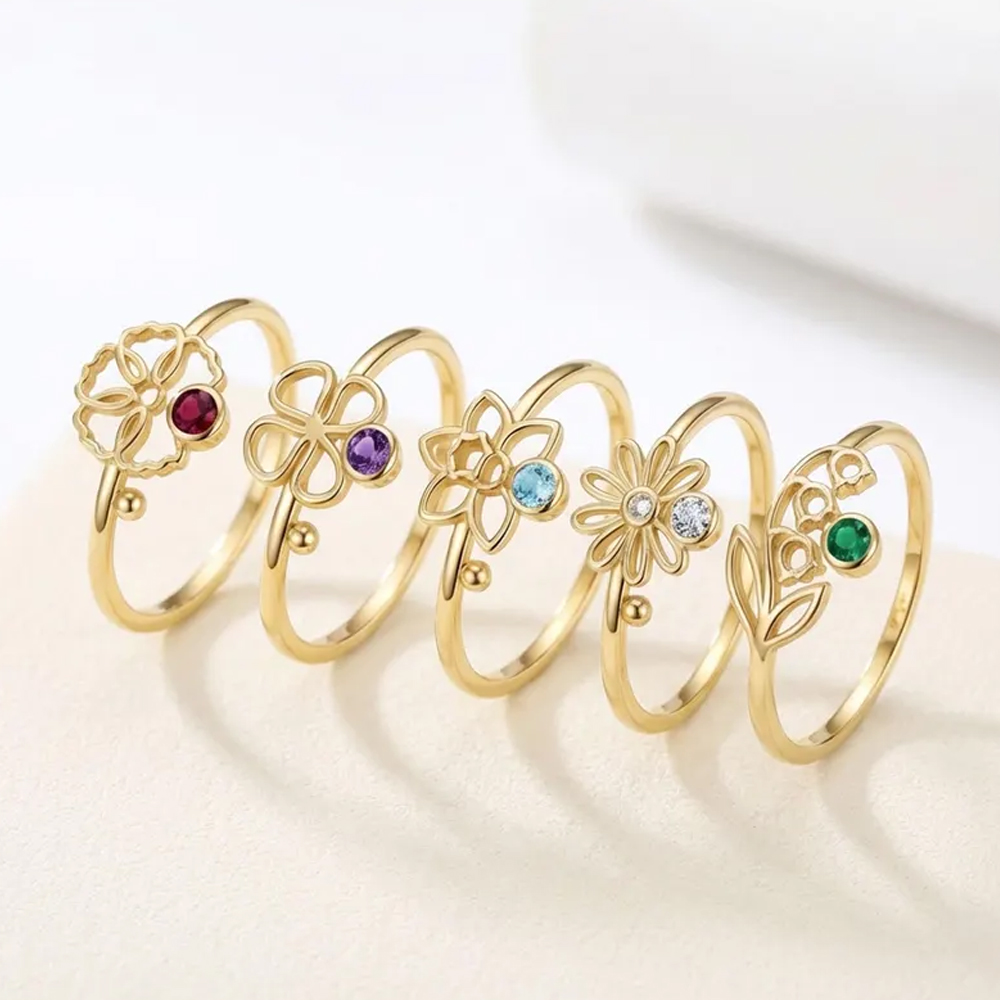 | Style | Personalized Hollow Birth Flower & Birthstone Ring |