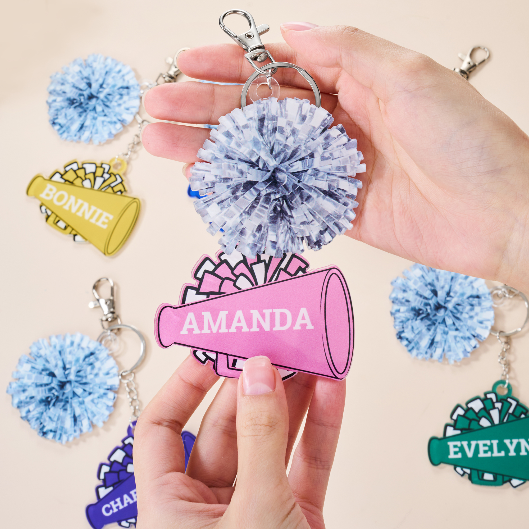 | Style | Personalized Name Cheer Megaphone & Pom Pom Keychain |