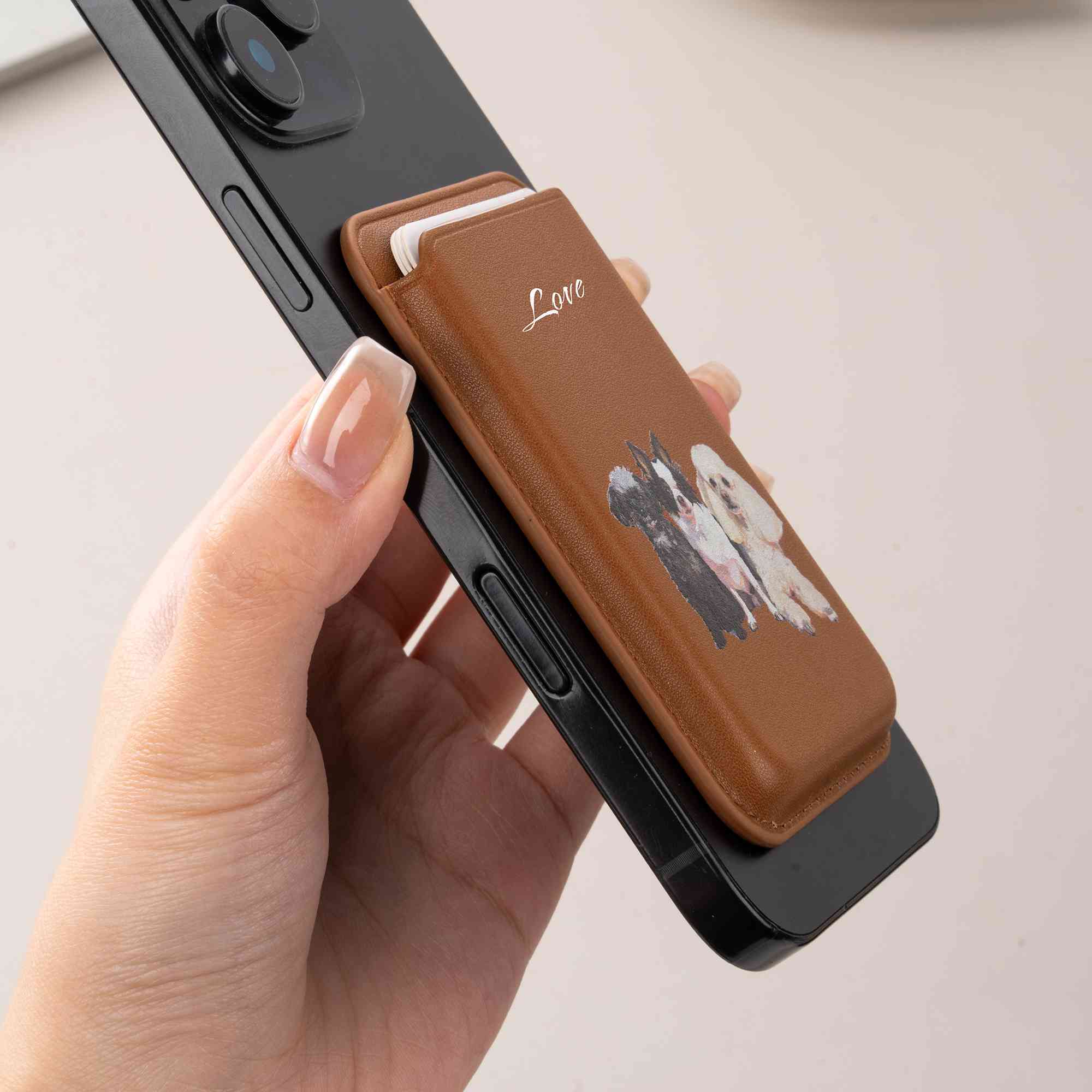 Personalized Pet Portrait MagSafe Wallet with Name, Leather Magnetic Card Holder for iPhone, Phone Case Accessory, Birthday Gift for Pet Lovers/Owners