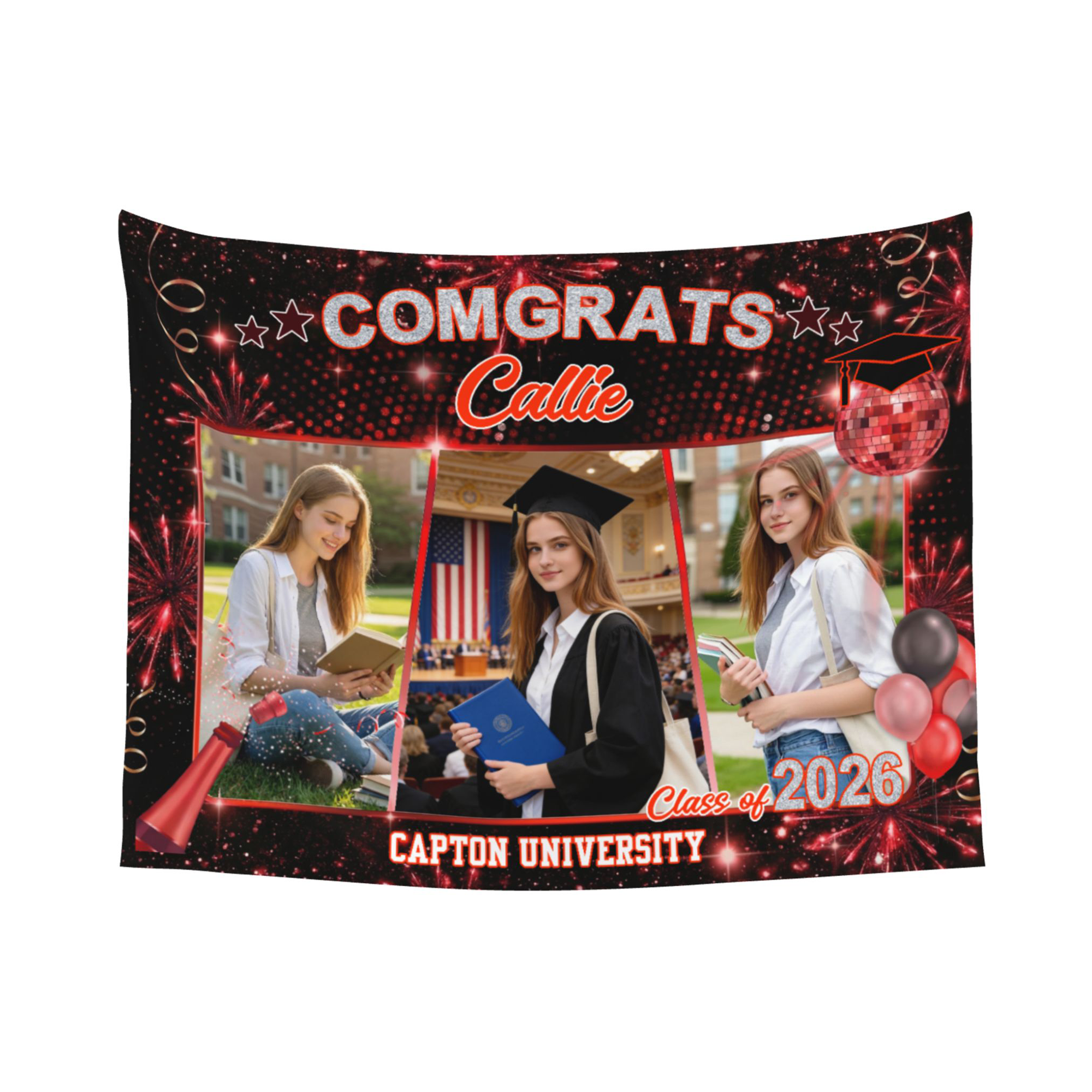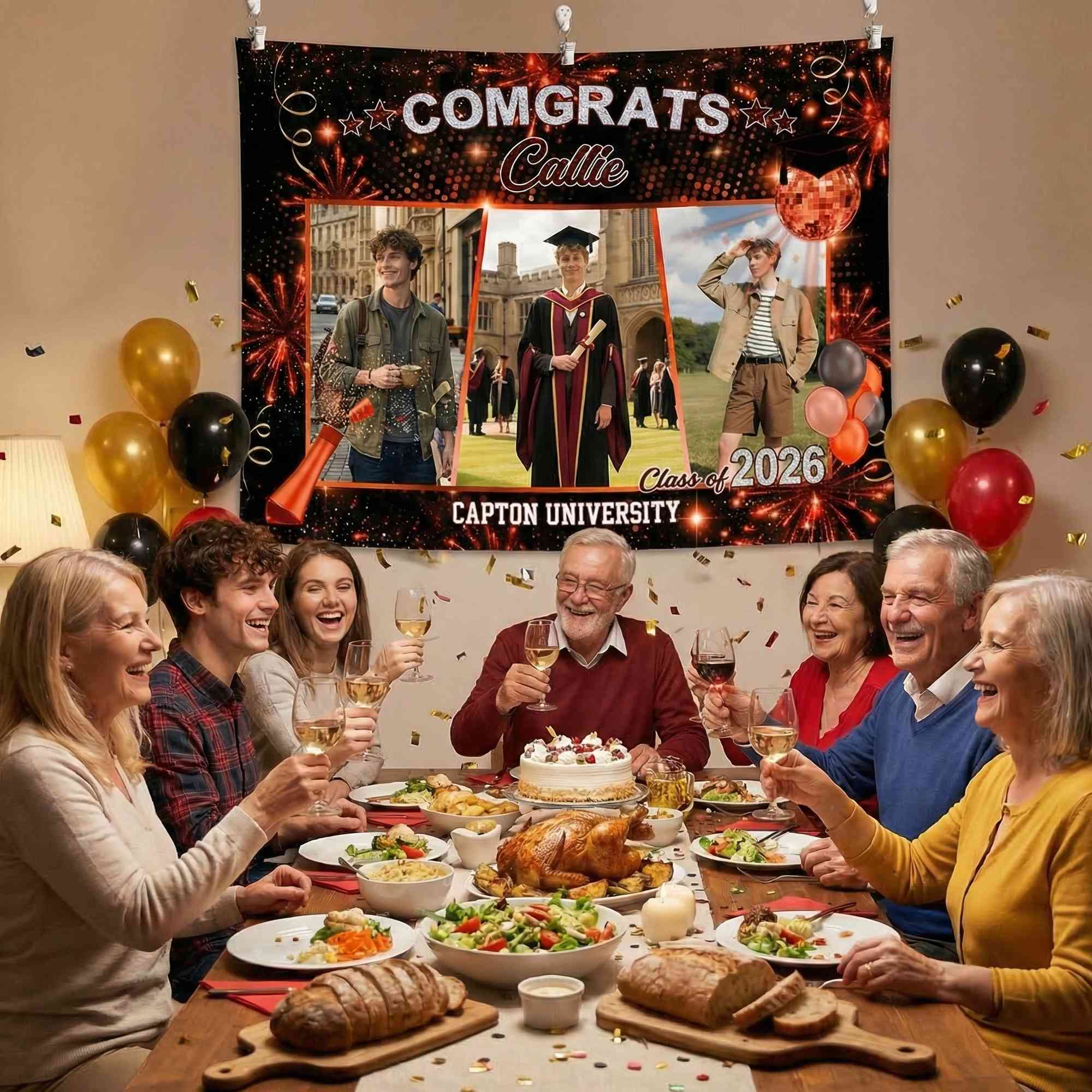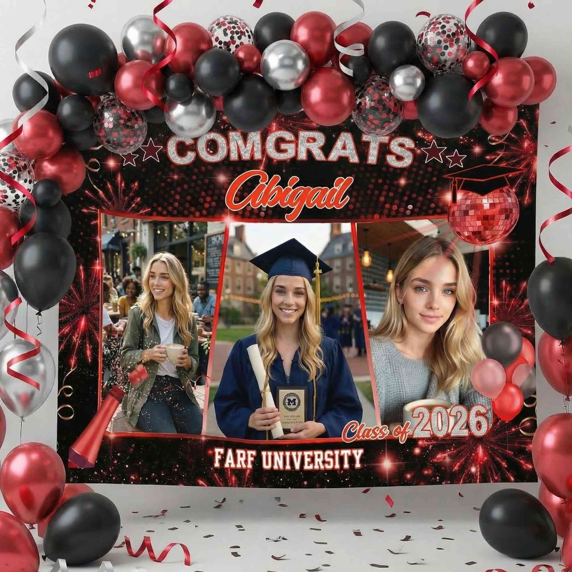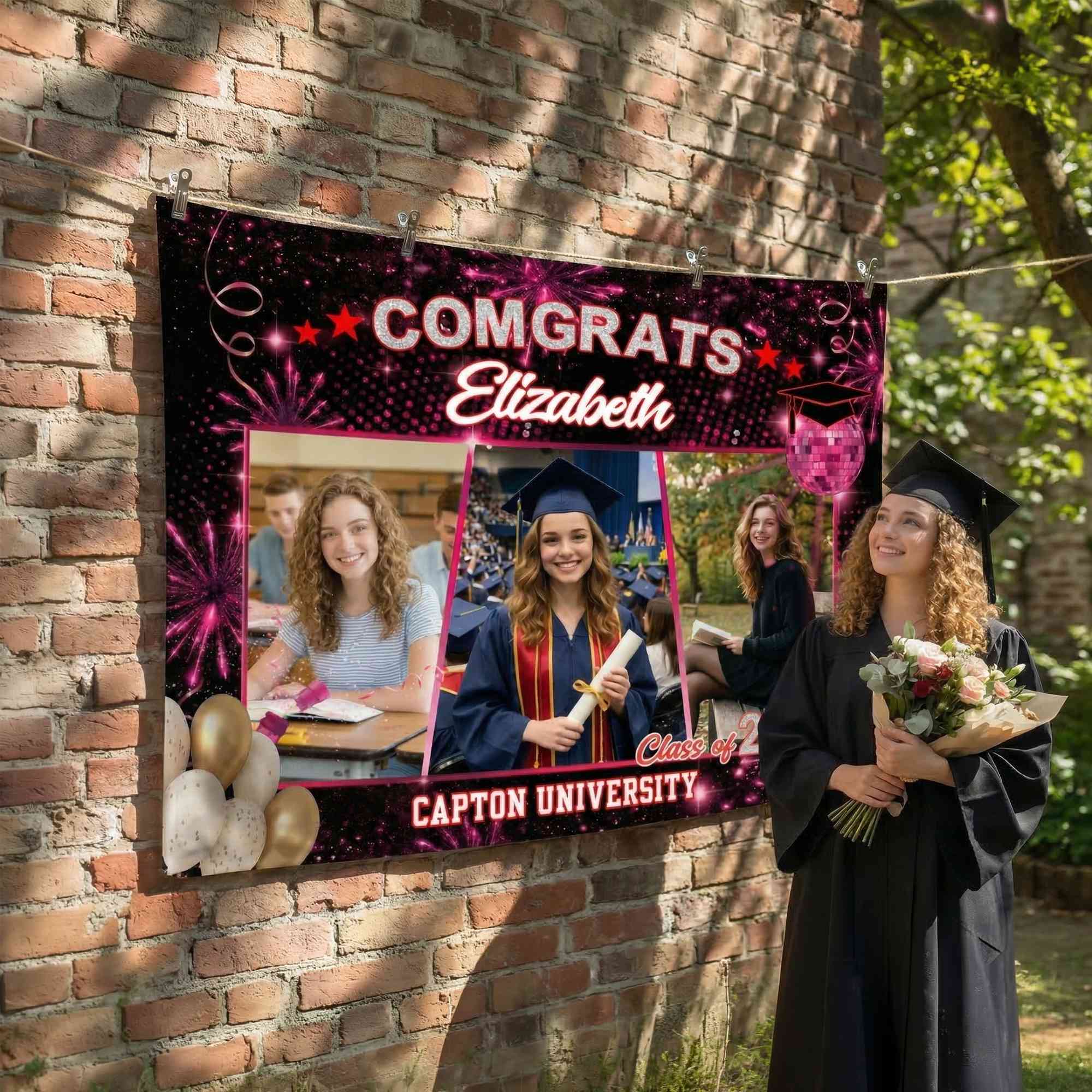 Personalized Touch - Add a custom name, graduation year, and even a university name to create a one-of-a-kind banner. The layout leaves space for 3 photos, allowing each graduate’s story to be displayed in a personal and memorable way.